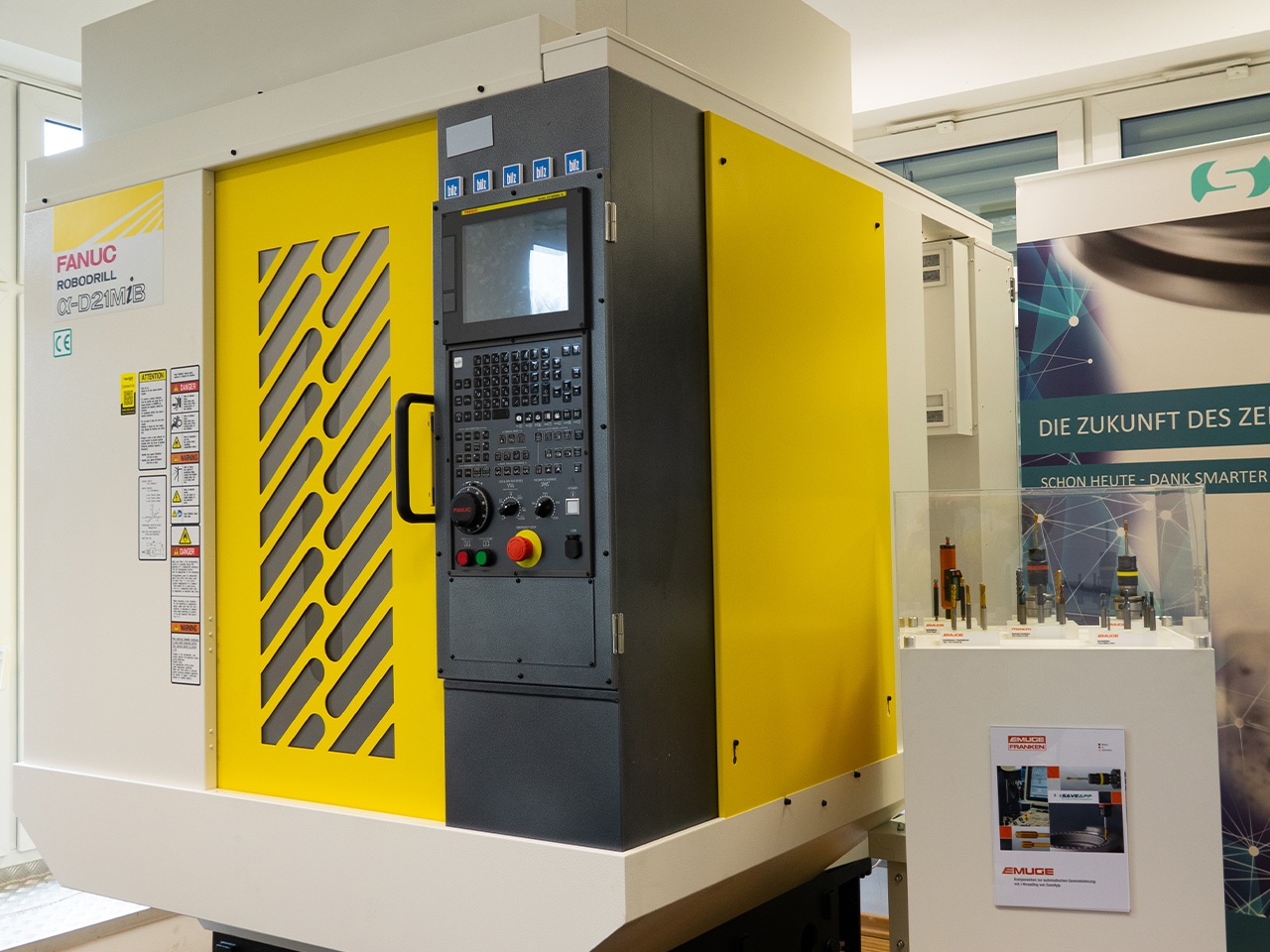 Wir schulen unsere Teilnehmer an unseren Vorführmaschinen PreMill V610B (Siemens Steuerung) und ROBODRILL D21MIB (FANUC Steuerung).